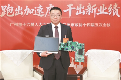 在广州日报的两会直播间,广州市人大代表、广州视源电子科技股份有限公司高级副总裁王靖夫打开了他的行李箱,向记者展示了公司的三款产品。它们分别是多年前推出的行业首款“三合一”液晶电视主控板卡、最新研发的“六合一”产品液晶电视主控板卡以及一款W3S学习机。