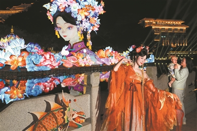在2025年粤港澳大湾区灯会上,“簪花女神”灯组深受游客喜爱。广州日报全媒体记者莫伟浓 通讯员刘伟、罗仲贤摄