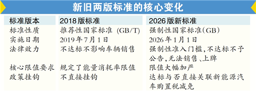 纯电动汽车实现更长续航容易,想“省电”却很难?一根新的准绳在2026年第一天落下。从今年1月1日起,《电动汽车能量消耗量限值第1部分:乘用车》(GB36980.1—2025)国家标准正式生效。该标准提出了不同车重下的电耗限值,较上一版推荐性标准加严约11%。