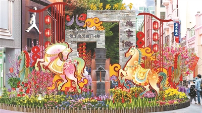 越秀西湖花市将打造多组“马”主题景观。主牌楼前“万马奔腾”主题生肖造型,展示“群骥驰骋”的壮阔图景;中心花坛以广府非遗红木宫灯为设计原型,绽放千年商都的开放情怀和生命力;铜壶滴漏花景,借鉴唐三彩陶马的壮硕矫健造型,富有动感和活力。