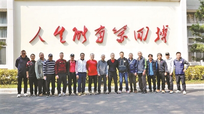 苏永舜与弟子们在“人生能有几回搏”的标语墙前合影,结束了这次有意义的活动。这句源自著名乒乓球运动员容国团的名言,是一代代中国运动员的精神坐标,如今也成为广东足球名宿对新一代球员的殷切期许。