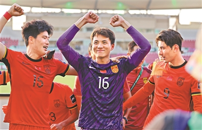 中国队门将李昊(中)在刚刚结束的U23亚洲杯赛事中表现出色。@新华社