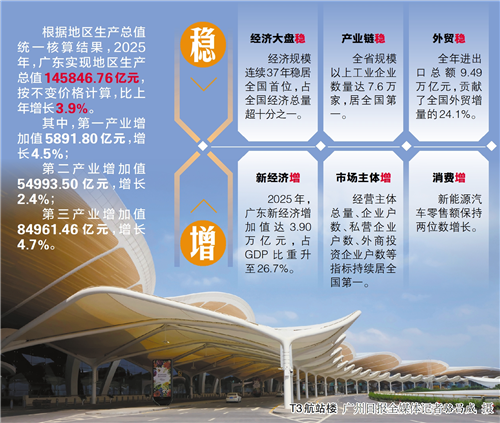 经济大盘的“稳”,是广东服务全国大局最坚实的担当。这份稳,首先体现在总量的绝对贡献上,14.58万亿元的经济规模,连续37年稳居全国首位,占全国经济总量超十分之一。