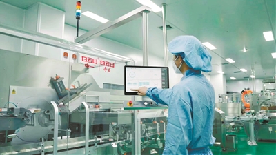 白云山奇星药业生产负责人表示,企业的生产线已经全面进入“中药工业4.0”时代。以拳头产品华佗再造丸为例,生产全过程实现工业互联网应用全覆盖,可以做到一气呵成的全链条数智化统一集成。数智赋能下,产品产能提高148%,生产效率提高289%,产品合格率达100%,实现生产效率与精度的双飞跃。