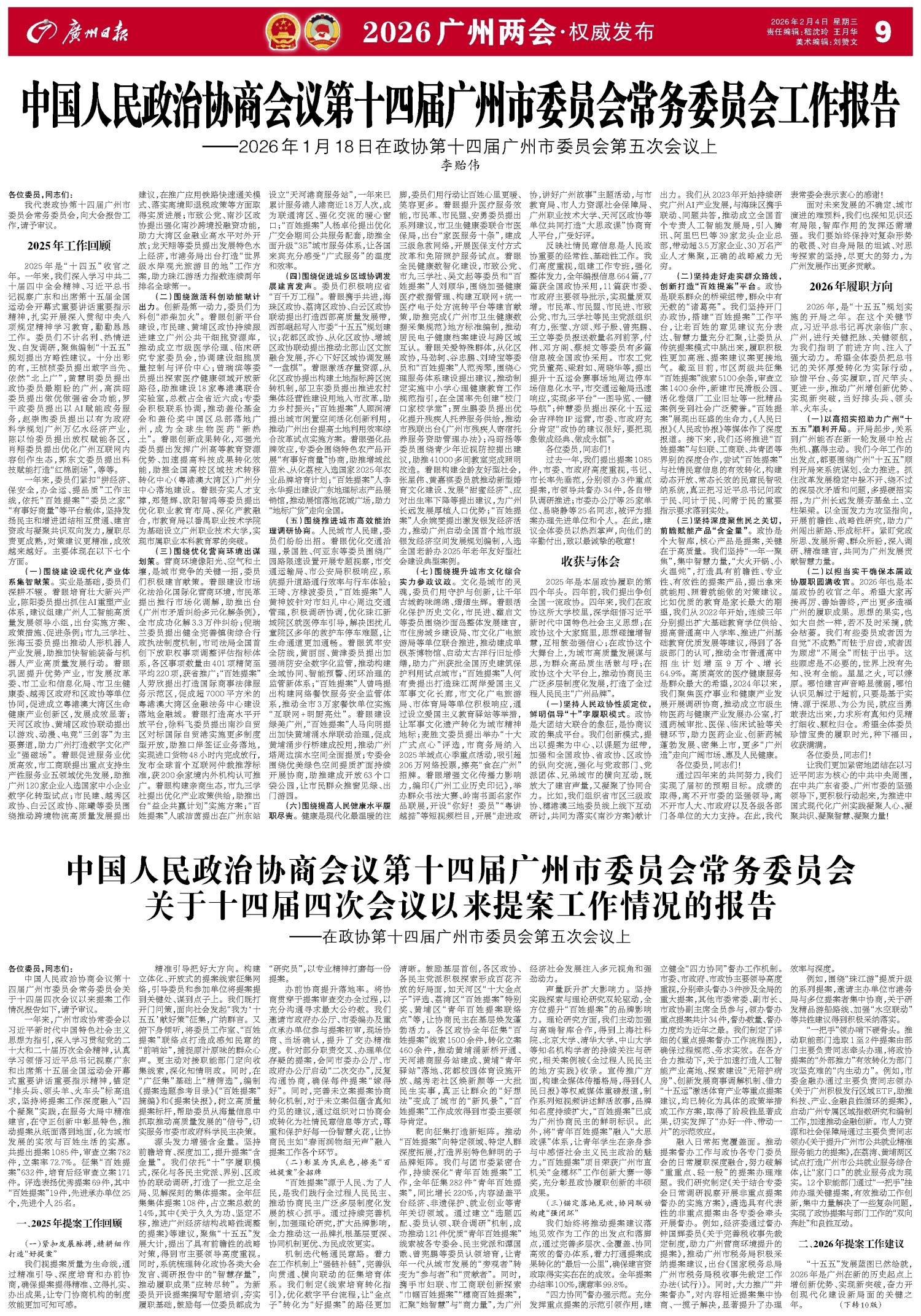 中国人民政治协商会议第十四届广州市委员会常务委员会工作报告