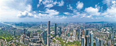 蓝天白云下的广州城区(资料图片)。广州日报全媒体记者苏俊杰 摄
