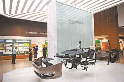 金发科技展厅里陈列的汽车材料。广州日报全媒体记者杨耀烨 摄