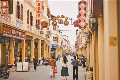 梅州嘉应古城步行街游人如织。