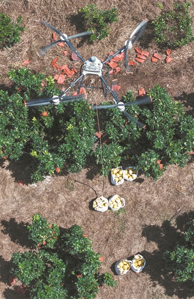柚子“飞”下山,无人机成摘果“新伙计”。高讯 摄
