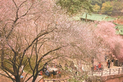 梅州高涧村怒放的梅花吸引了不少游客。