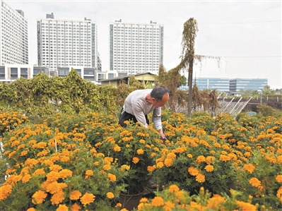 岁月变迁,黄龙村的田埂上也悄然发生变化。花卉种植如今也成了黄龙村的主业之一。有农户潜心培育罗汉松,也有农户一到年末就忙着栽种年桔、年花。我信步走在村里,一片金灿灿的万寿菊花海映入眼帘。花海间,一名皮肤黝黑的村民正在照料花朵,他便是花农梁耀恒。“我种的冬瓜曾在冬瓜文化节上被评为‘瓜王’,现在,我又种起了年花,今年种的都批发完了,只剩下一部分留给街坊、熟客选购,几乎不够卖。”梁耀恒的语气里满是喜悦,“按照今年的年花行情,估计能增加3万—5万元收入,日子越来越有盼头了。”