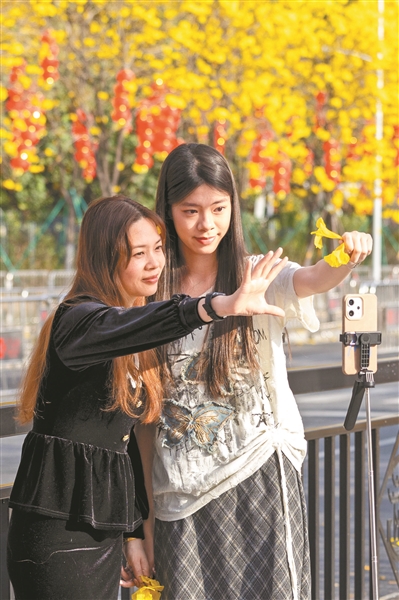 春节期间,洲头咀公园一带的黄花风铃木进入盛放期,不少市民游客前来拍照留影。广州日报全媒体记者苏俊杰 摄
