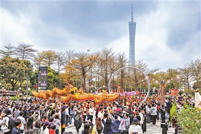 昨日,2026年猎德社区新春巡游活动在天河区举行。这项传统民俗活动已有过百年历史,于2024年复办。该次活动以全新姿态亮相天河CBD,让广府民俗文化与现代国际街区交融碰撞,成为广州新春文旅融合的亮眼名片。广州日报全媒体记者苏俊杰 摄