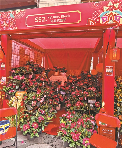 在福田花市的另一隅,比利时布洛克园艺(NV Jules Block)空间同样人气满满。来自比利时的杜鹃花新品在此绽放,艳丽的色彩成为绝对的主角,与新春的喜庆氛围相得益彰。布洛克园艺特邀主理人Anton在摊位前开心地和市民游客交流着。