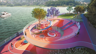 本月正式开工的环南湖绿道慢行系统项目将联动白云山等自然山水资源,构建“山水—湖泊—城市”一体化的生态文旅廊道,左图为工程规划效果图。