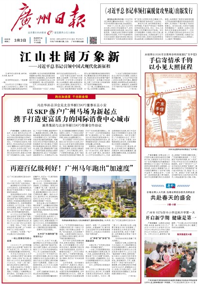 广州日报头版A1再迎百亿级利好!广州马年跑出“加速度” 吴城华2026-03-03 2 2026年03月03日 星期二