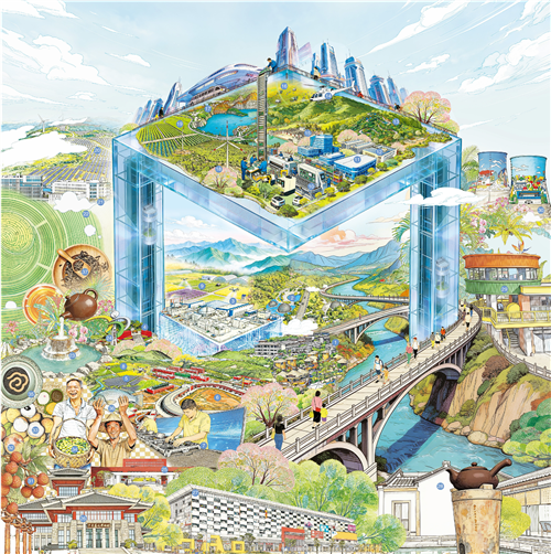 城乡融合,山水相映。破解城乡区域发展不平衡,潜力在融合、出路在共生。以产业为根基、民生为导向、生态为保障,广东以县城为枢纽,让城市资源“下沉”与乡村资源“上行”双向涌动,城乡产业血脉更加交融,经济联结愈发紧密。生产、生活、生态同频,城乡之间不再是此消彼长的博弈,而是山水相映、产城相融的共生。