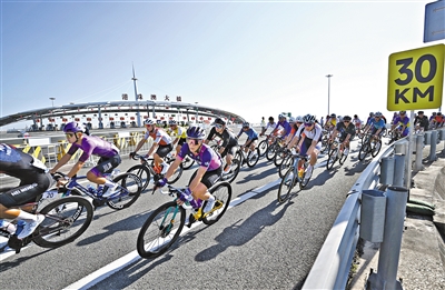 2025年11月8日,第十五届全国运动会公路自行车男子个人赛决赛开赛,选手经过港珠澳大桥,跨越粤港澳三地。这是全运会历史上首次举办跨境比赛。 新华社发