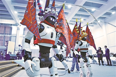 大湾区大学生艺术节上,机器人威风凛凛。(资料图片)