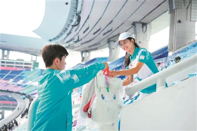 十五运会志愿者“小海豚”给大家留下美好记忆。(资料图片)