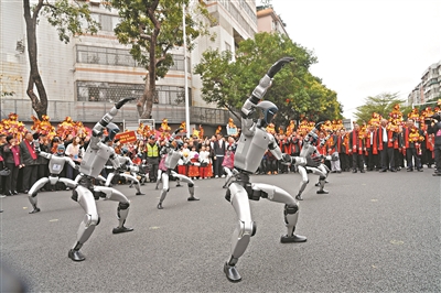 在巡游方阵中,佛山市领导班子身着国家级非遗——顺德伦教香云纱服饰亮相,成为一道流动的文化风景线。“智造强市方阵”也格外引人注目。人工智能、机器人、半导体芯片、新材料、医药健康等新兴产业的代表们精神抖擞地行进,展示佛山推动传统产业转型升级、新兴产业发展壮大、未来产业培育布局“三箭齐发”的雄心壮志。