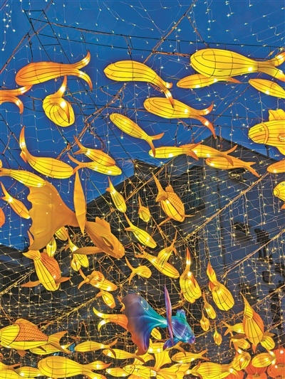 沿途的鱼灯很有氛围感。
