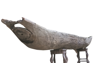 这艘独木舟有2000多年的历史,是广船的始祖,深埋于台山大江镇地下3米多深,出水时整体保持完好。