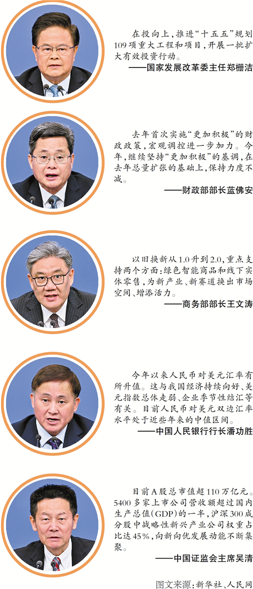 在加力建设强大国内市场方面,郑栅洁表示,我国实物消费量已是世界第一,今年工作重点是消费、投资两个方面。“消费方面,我们将继续实施‘两新’政策,会同商务部、人社部,深入实施提振消费专项行动,推出稳岗扩容提质行动、服务业扩能提质行动等新举措,安排更多政策和资金,更好释放消费潜力。”在投资方面,国家发展改革委将统筹资源力量,继续推动“两重”建设等工作。