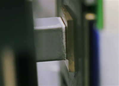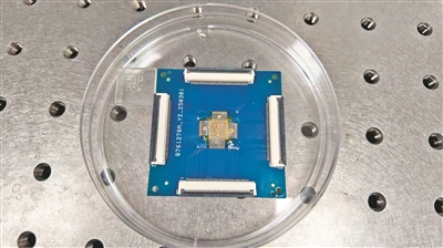 实验室内,訾云龙向记者展示了团队研发的双模态触觉传感器阵列。在一个7mm×7mm的正方形上,密密麻麻地安装了100个直径仅0.35毫米的触觉传感器,形成一块传感器阵列,下方则依次为摩擦电层和压电层。装上这套阵列后,机器人便可以精细感受物体表面的软硬程度,“一根香蕉是真是假,可以轻易逃过机器人的视觉检测,却逃不过装上传感器阵列后的手指。”