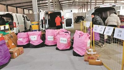 拼多多“免费送货入村”服务落地扶风县,并依托县级物流共配中心建起了进村快递中转仓。(王菲菲摄)