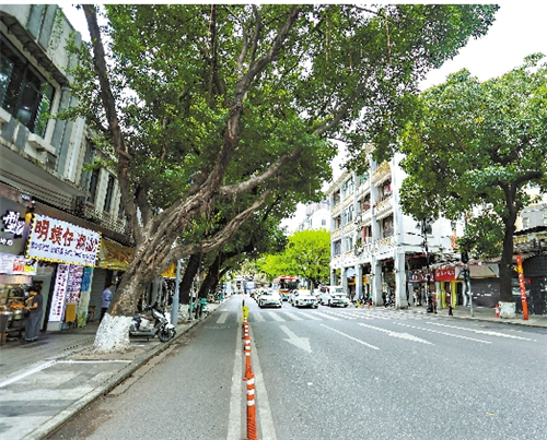 广州日报讯 (全媒体记者廖靖文摄影报道)3月2日,《广州文明导报》报道越秀区起义路高第街牌坊周边存在杂物货物随处堆放、垃圾落地、非机动车随意停放等情况。问题曝光后,越秀区城市管理和综合执法局迅速进行问题整改。记者现场回访时看到,起义路人行道干净整洁,部分路段增设了果皮箱,划设了共享单车、电动自行车停车位。现场有工作人员对周边商铺、住户上门开展“门前三包”宣传。