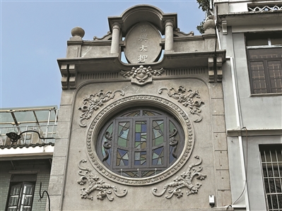 富兴大押旧址外观有半圆拱门、浮雕花卉等。