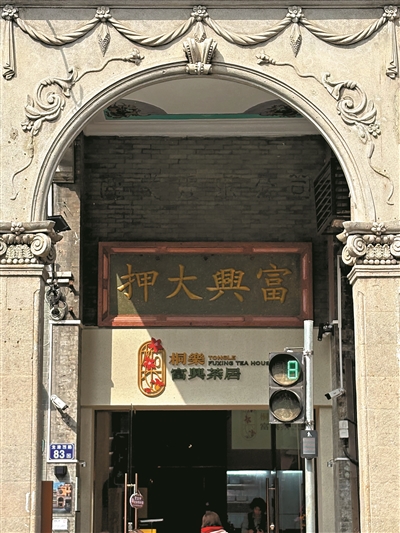 近日,记者来到富兴大押旧址,门口挂着长者饭堂和桐乐富兴茶居的招牌,告示写着“2月13日启市”。径直走入里面再右拐,穿过一道拱门,便来到了一楼营业空间,来饮早茶的街坊已坐得七七八八。69岁的街坊梁叔住在附近,他告诉记者,自2月13日启市,他已是第四次光顾,“在附近住了将近60年,以前这里是一间粤菜饭店,二楼不对外开放。饭店闭店后,就再也没来过。”梁叔说,此次装修后,环境更明亮,但内部结构没有特别大的变化。“装修风格虽然比较简约,但是很多点心是手工制作、新鲜出炉的,品质属中等偏上,价格也不算贵。”“这是我们第一次来。”街坊陈伯、周姨夫妇前阵子路过富兴大押旧址时发现它开放后前来打卡。“以前,这里是满园春粤菜餐厅,2020年左右关店了。”周姨说,那时饭店主打八宝鸭、冬瓜盅、花雕鸡等老式粤菜,他们时不时会来吃饭。