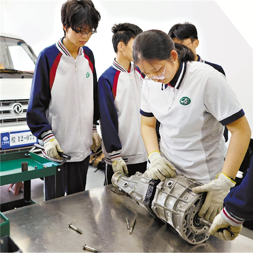 在广州市交通运输职业学校,新能源汽车运用与维修专业中本贯通班学生邓彤瑶同样收获满满。“我们学的是高中数学和英语,题目有一定难度。”在实践课上,她热衷于拆装汽车底盘、传动轴,“我喜欢动手,感觉特别酷。”邓彤瑶坦言,以她644分的中考分数,去普高也不一定能稳稳地上本科,但中本贯通是一个很好的选择。