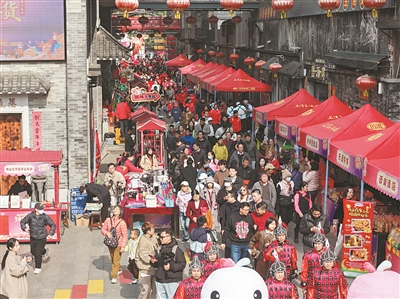 每年农历二月二“龙抬头”,“游朱紫・大红大紫”的活动总能点燃全城热情,特色民俗巡游和非遗展示等环节精彩纷呈,醒狮腾跃、粤剧传唱,锣鼓声、欢笑声交织在一起。2023年的“游朱紫”活动重新启动当晚就吸引了超5万人次参与,2025年两天两夜的“游朱紫”活动更是吸引了线下总共20万人次的参与,巷子里的烟火气,比明清时更浓。2025年腊八节的“朱紫墟市”上,近50家非遗与老字号摊位一字排开,陶艺匠人指尖翻飞捏塑石湾公仔,剪纸传承人剪刀游走剪出百态吉祥,书法家挥毫泼墨送福迎春,“接龙气、摸九子、过金斗”等祈福打卡项目,让大人小孩都乐在其中。