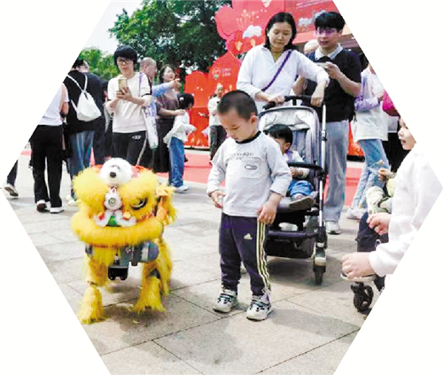 这场由白云区委宣传部、区文明办等单位主办的红色文化盛宴,与往年不同的是,今年的活动现场出现“新面孔”,机器狗、智能机器人化身“红色宣传员”,与本土IP“大湾鸡”组成“跨界天团”,激活文化传播的“年轻态”,助力红色文化“破圈”。