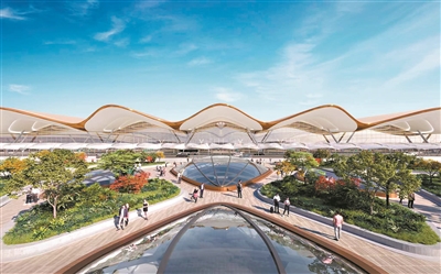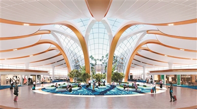 广州新机场指廊花园效果图。