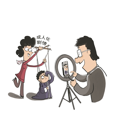 近来,短剧市场出现了“萌娃”这一新赛道——越来越多未成年人开始成为短剧拍摄片场的主角。然而,“萌娃”看似是主角,实则不过是将霸道总裁、豪门商战等成人剧情套用到儿童身上,再利用“孩子的天真”与“成人的世故”制造反差感罢了,本质上仍是迎合观众的猎奇消费。对此,要警惕将儿童“成人化”“商品化”的不良倾向。尤其是仍处于野蛮生长的竖屏短剧产业,在市场规范、儿童权益保护等方面,不妨先摸着长剧的石头过河。