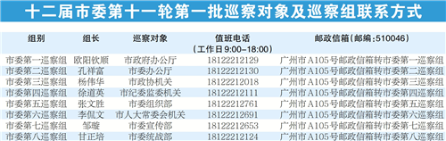 广州日报讯 (全媒体记者章程 通讯员穗巡宣)根据广州市委关于巡察工作的部署,十二届市委第十一轮巡察采取“一轮两批次”方式,对19个市直单位党组织开展常规巡察。截至4月9日,市委8个巡察组已完成对第一批巡察的8个单位的进驻工作,本轮巡察工作全面展开。