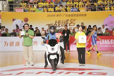 在肇庆队和江门队的比赛中,有观众在抽奖环节抽到摩托车。