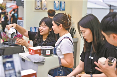 广州咖啡产业创意已吸引世界目光。在白云金达咖啡饮品城内,提供一站式茶咖开店全案服务的“万遇水吧”店中,来自北马其顿的商人西尔维娅低头认真记录果咖调配细节,笔记上写满配比与心得。“广州有现代的咖啡创意,我们当地年轻人很喜欢。”她要把这份灵感带去家乡。这家店铺,每月要接待二三十批远道而来的海外客商,单次合作金额常达数百万元。