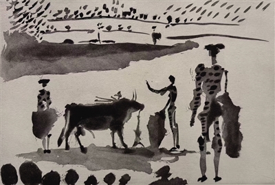 毕加索晚年确实受到中国书画影响,曾用毛笔临摹齐白石画集,转向以线造型、删繁就简,这种简化线条与写意风格,的确是受到中国书画影响。而汉画像砖以简练阴线或阳线捕捉神形、采用散点构图与时空并置的特征,与毕加索斗牛版画后期去细节、抓本质的减法创作异曲同工,在审美上高度暗合,属于跨文明的审美共鸣。