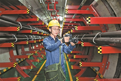 全国五一劳动奖章获得者李濛在地下隧道对电缆进行巡视检查。 广州日报全媒体记者骆昌威 通讯员洪林 摄