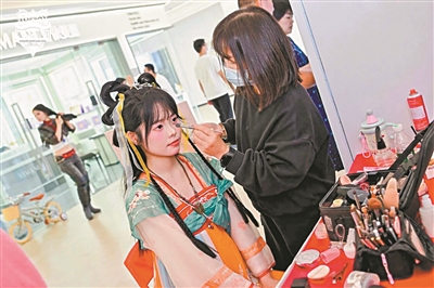 比如此次电竞粤超城市海选赛广州站,将举办地选在广州白云里国际美妆中心,正是为了践行“电竞+产业”的思路,打造出“电竞+美妆”的新鲜玩法,这在本土电竞赛事中还是头一回。白云里国际美妆中心联动赛事,专门打造了电竞盛妆空间,请来专业化妆师,免费给现场观众化游戏里的角色仿妆。不少年轻人特意过来,化上喜欢的角色妆,打卡拍照、看比赛。