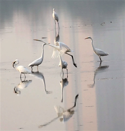 良好生态环境让这里慢慢地成了鸟儿们的聚集地,如今,除了白鹭,还吸引了不少其他种类的小鸟来此栖息、觅食,这里俨然成了“小鸟天堂”。