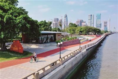 海珠区拥有全市唯一、珠江前后航道环绕的天然禀赋,42.2公里的生态水岸已经建成多段碧道、绿道,海珠国家湿地蜚声国际。这里同样人文荟萃,有见证中外文明交往和贸易发展的海幢寺——潘氏大院、黄埔古港古村、太古仓,邓世昌故居、孙中山大元帅府、第一次全国劳动大会旧址、岭南画派祖庭十香园等史迹。当然,广州的城市地标广州塔也在海珠。