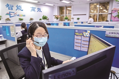傍晚时分,胡穗娟的下班时间到了,她收拾好东西,看看四周,灯火通明下,同事们都在忙碌地接听着热线。他们每多接一个电话,市民的困扰可能就会减少一分。