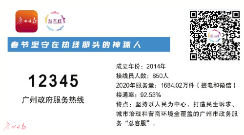 今日起,广州日报将推出“春节坚守热线那头的神秘人”全媒体系列报道,聚焦12345政府服务热线、110报警热线、12320公共卫生热线、95598供电热线等接线员,讲述他们坚守岗位的故事。在这座城市安定繁荣背后,离不开这群热线神秘人的辛勤付出,他们热得发光、热得温暖。