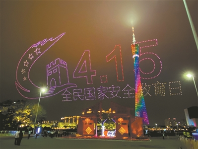 昨日是第六个全民国家安全教育日。今年的活动主题为“践行总体国家安全观,统筹发展和安全,统筹传统安全和非传统安全,营造庆祝建党100周年良好氛围”。据了解,除了无人机编队表演,4月11日至17日晚上7时30分至10时整,珠江水畔“一江两岸三桥”也将亮起美轮美奂的光影秀开展国家安全主题宣传。