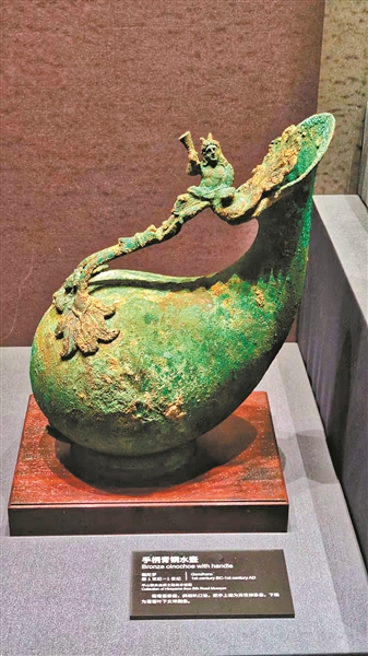 展览中还展出了公元前14世纪时的精美玻璃珠串和圆形吊坠。馆方专家指出,美索不达米亚平原是人类玻璃产品和技术的源头之一,这里的人们早在前30世纪便开始生产原生玻璃。大家可以把它们和1954年广州横枝岗汉墓出土的蓝色玻璃碗做对比——这件玻璃碗是中国出土最早的罗马玻璃器皿。